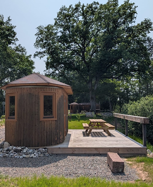 Le domaine accueille ses visiteurs dans des cabanes confortables, pensées pour une immersion douce et chaleureuse.